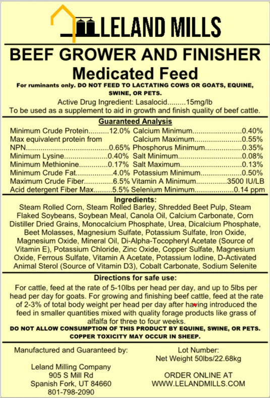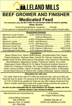 Our top feed for finishing cows. Medicated with Lasalocid.
